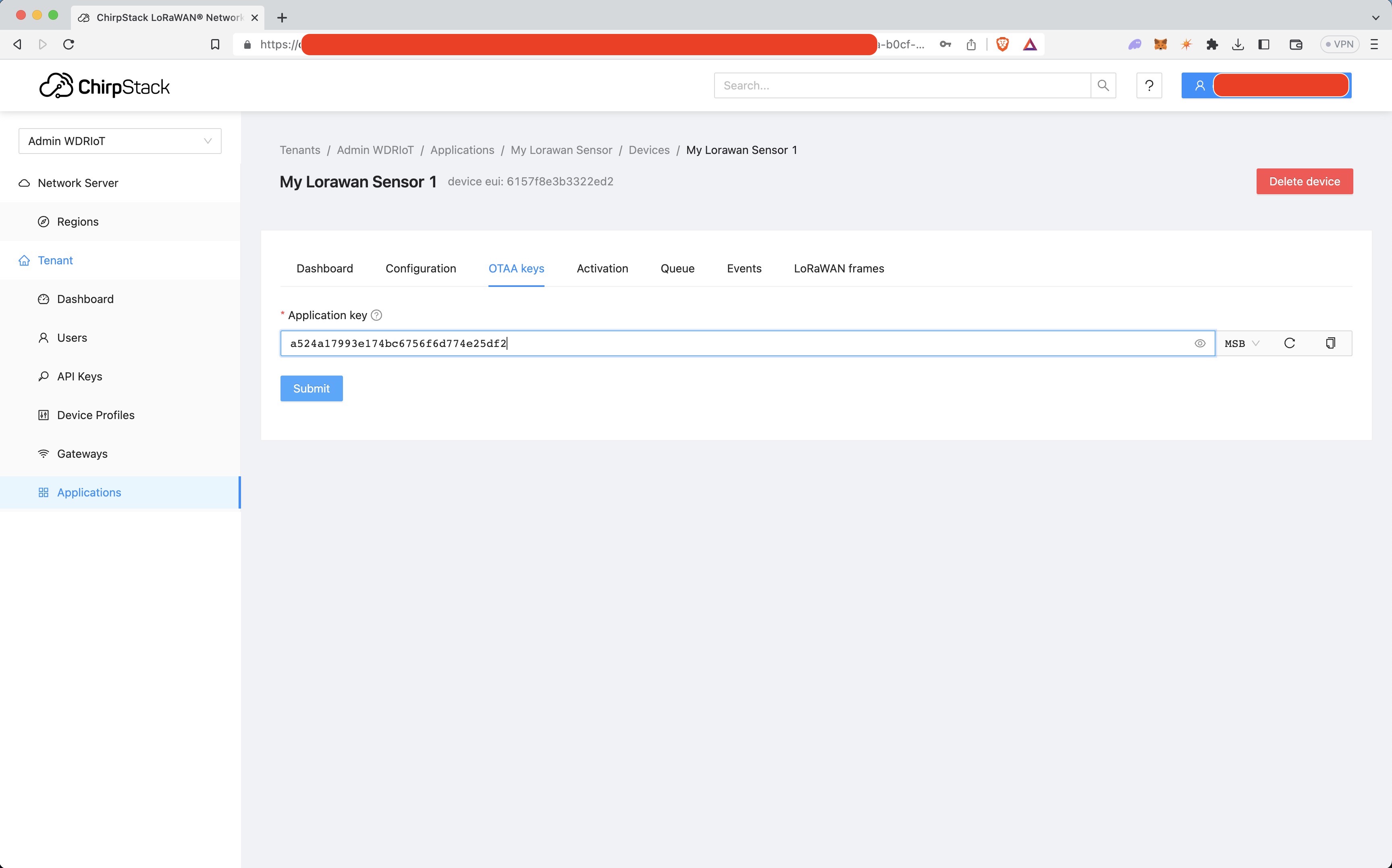 Click Submit once you enter the application key.