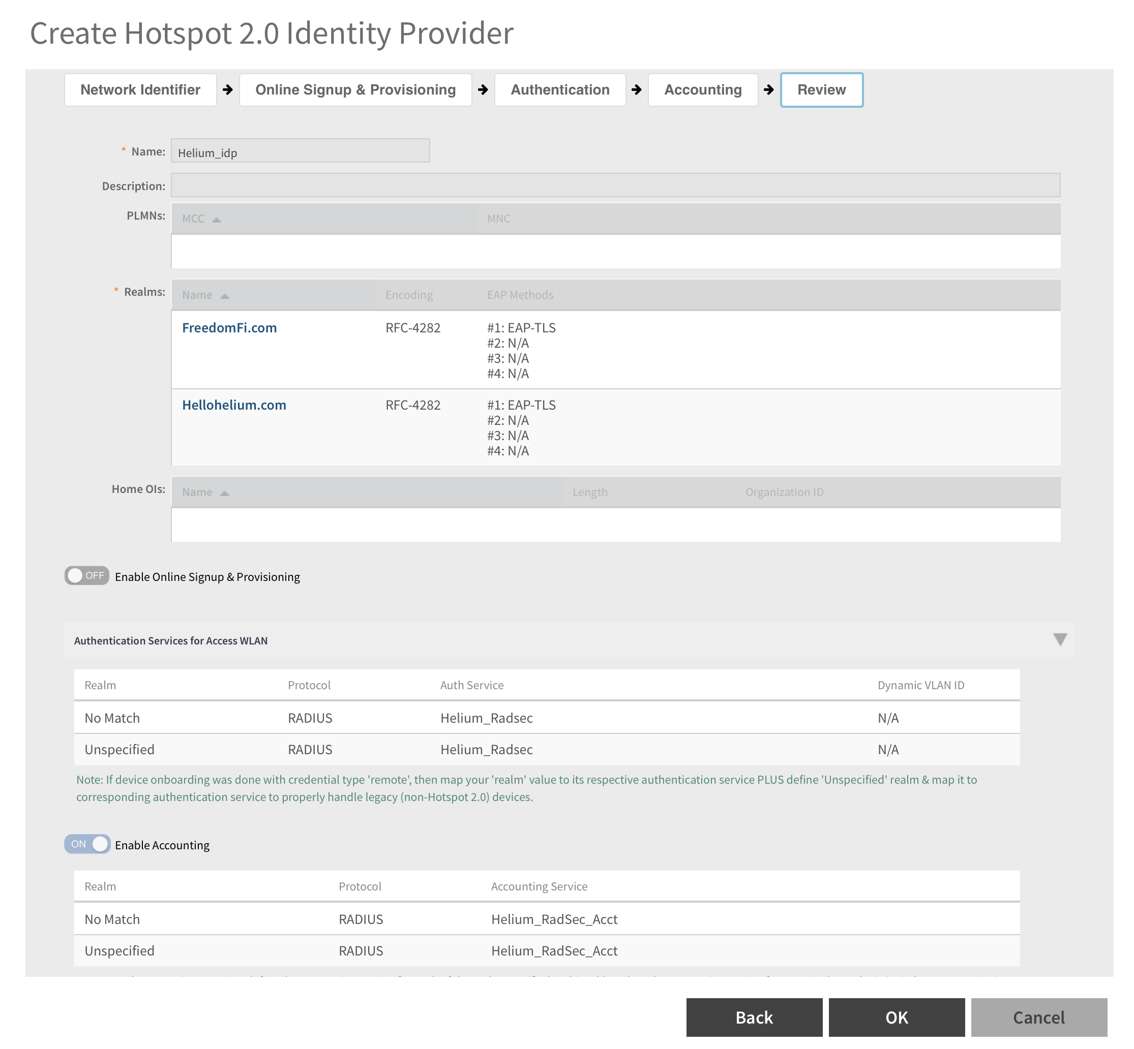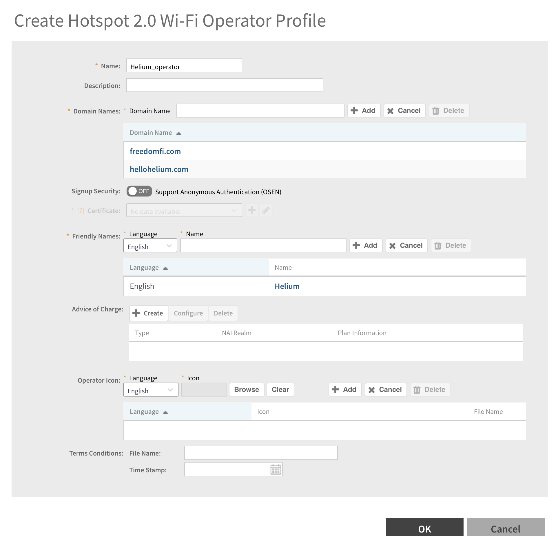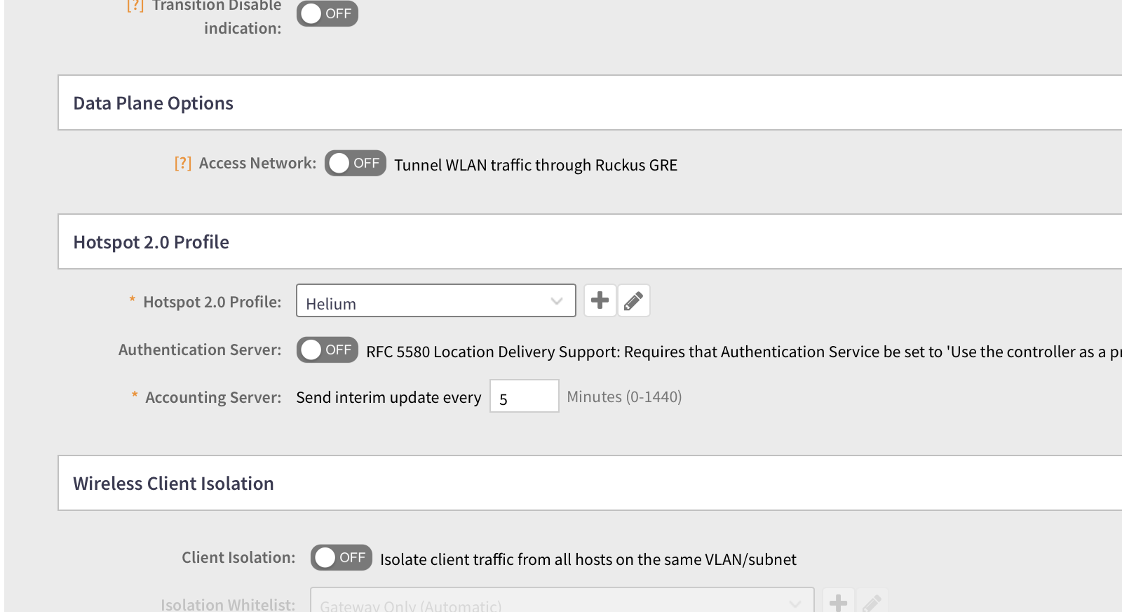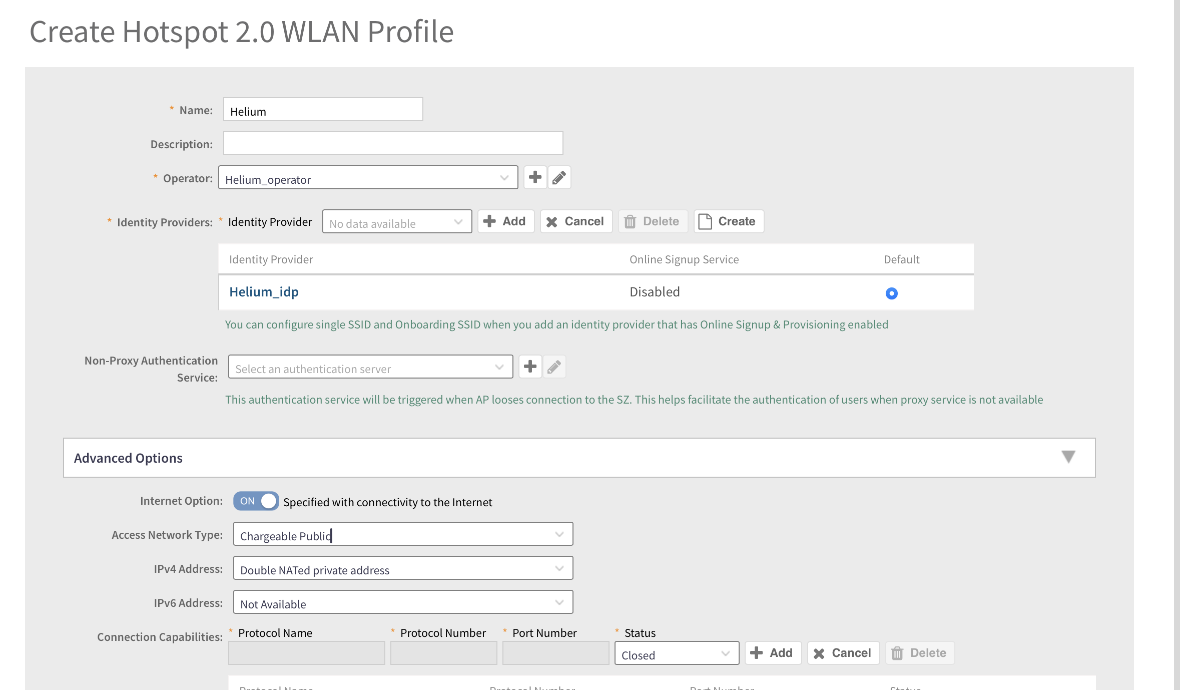The following steps will configure your Ruckus system to broadcast an SSID with the needed Passpoint and RADIUS configurations to support Helium Mobile user offload.