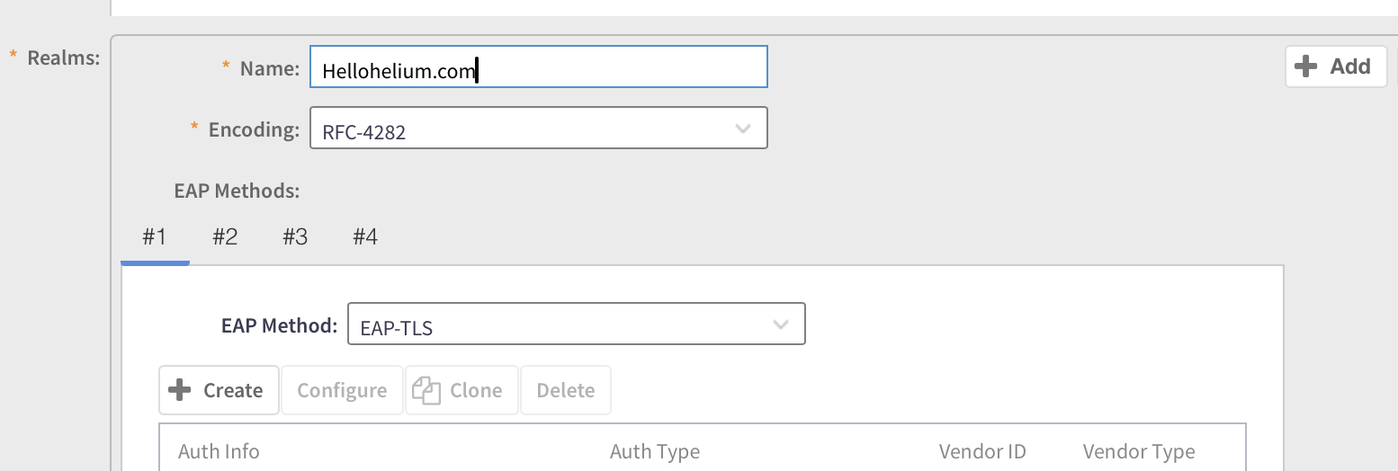 2. In the Realms section, enter Name as Hellohelium.com and click +Add