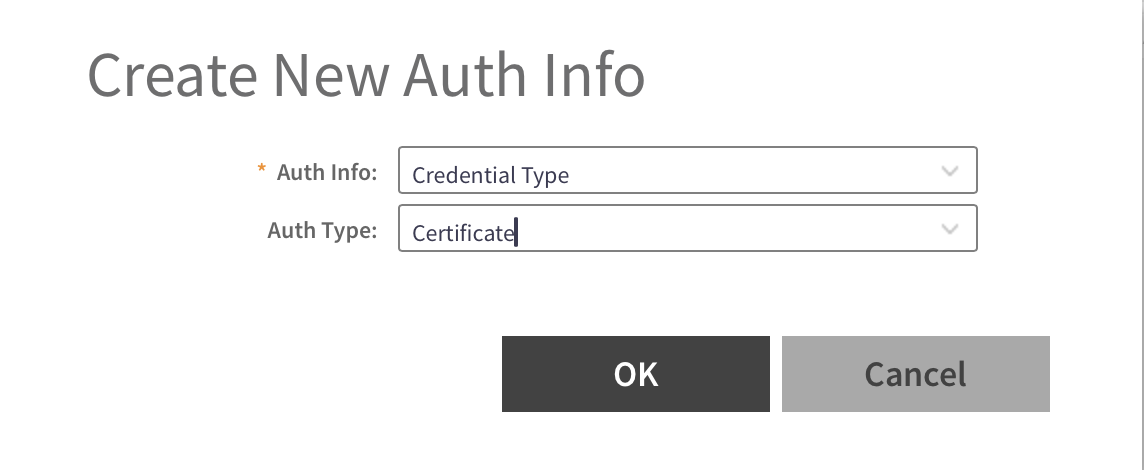 1. Choose Auth Info to be Credential Type and Auth Type to be Certificate and click OK.