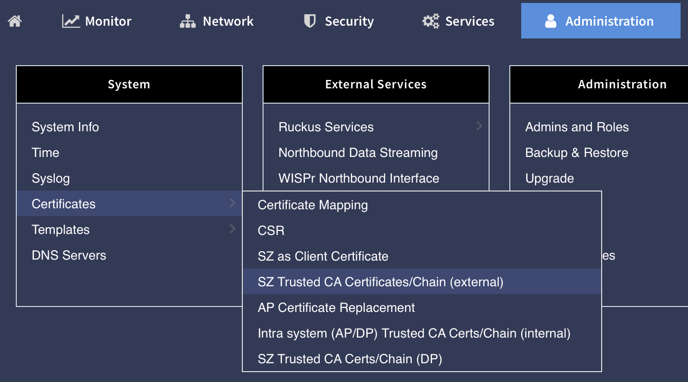 1. Click on Administration>System>Certificates>SZ Trusted CA Certificates/Chain(External)