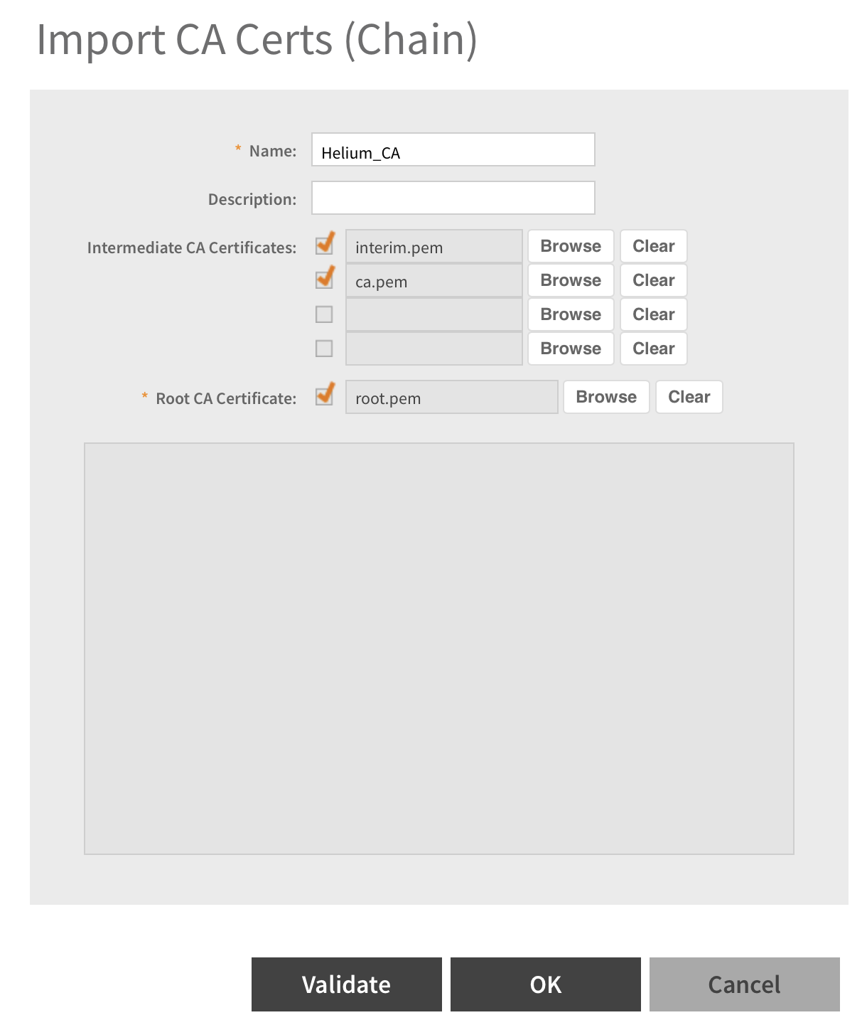 2. Load the interim.pem, ca.pem, and root.pem certificates from your local directory.