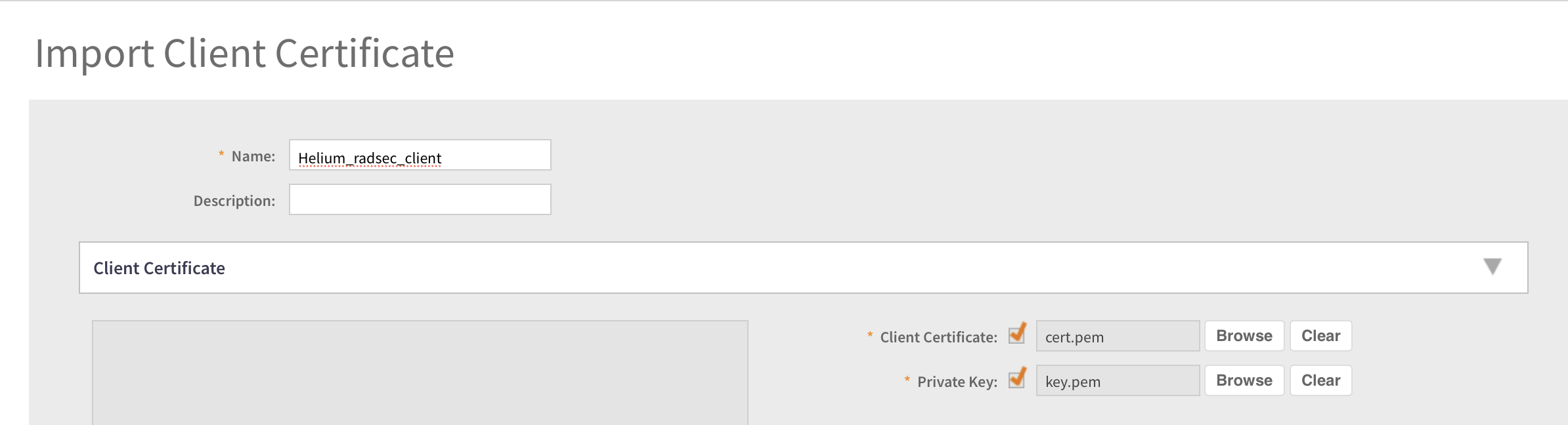 5. Select Client Certificate from drop down to be Helium_radsec_client