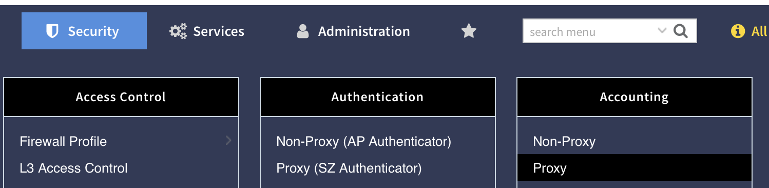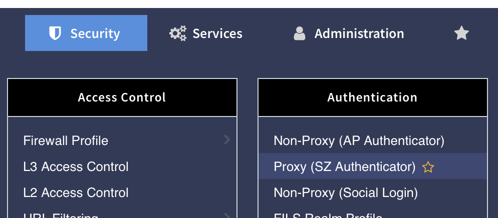1. Click on Security>Authentication>Proxy(SZ Authenticator)