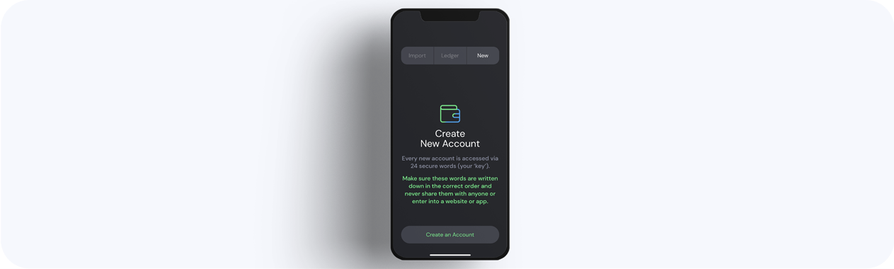 Accounts created with the Helium Wallet app are generated with a 24-word seed phrase. These 24 words in the correct order are the only way to access the account and can never be recovered if lost. Whomever has the 24-word seed phrase controls the wallet, meaning that they are considered the owner of all tokens, Hotspots, or NFTs in the account.