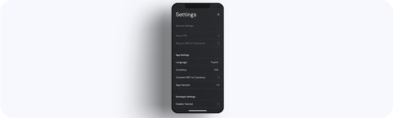 The Helium Wallet app has interface settings that can be adjusted to your liking.
